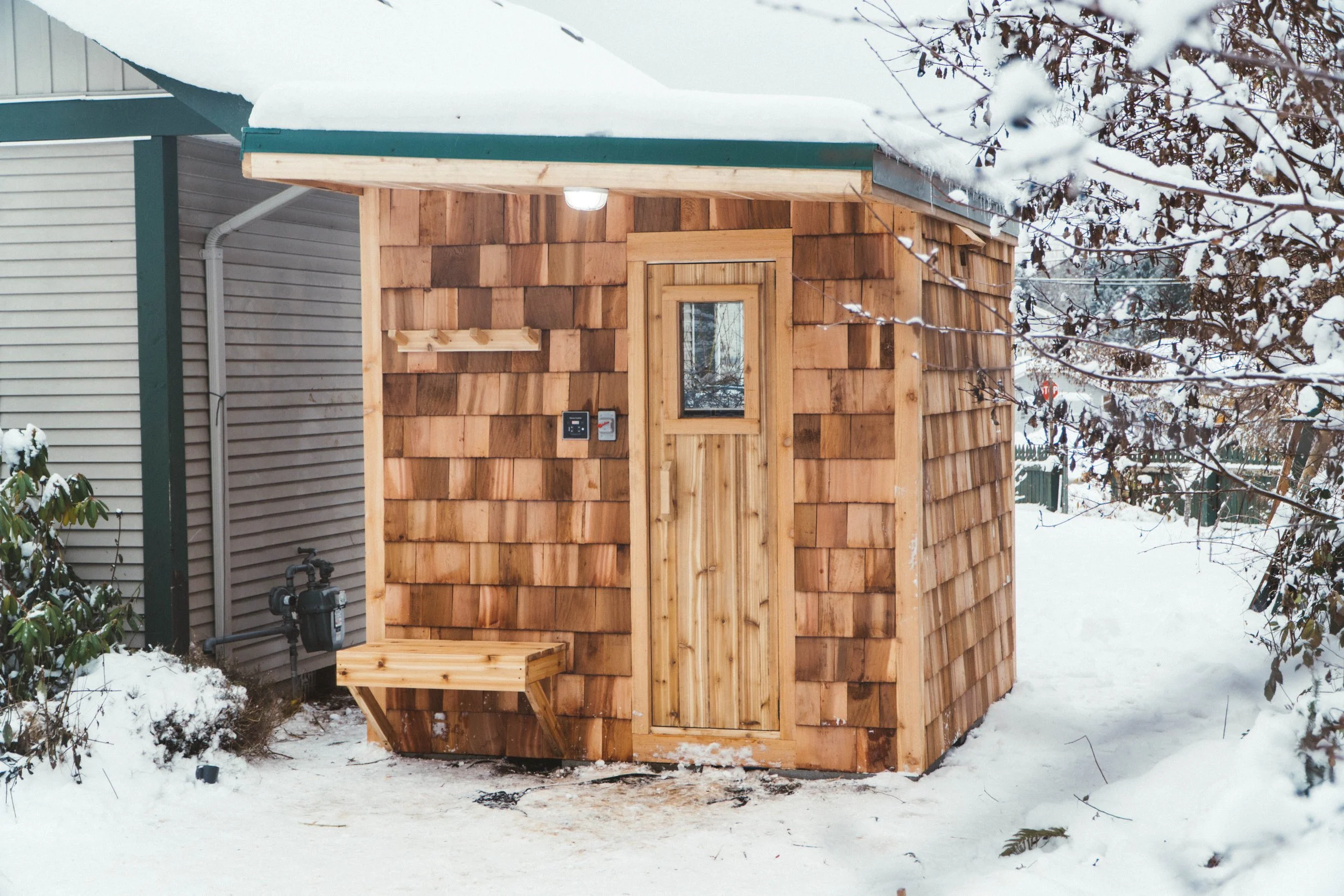 All of our saunas are made with locally milled Western Red Cedar unless otherwise requested. The cedar is select tight knot and kiln dried to minimize and cracking or warping that green lumber can experience. It also ensures our wood is dimensionally stable.